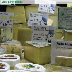 Das Käsesortiment ist vielfältig und im Offenverkauf.